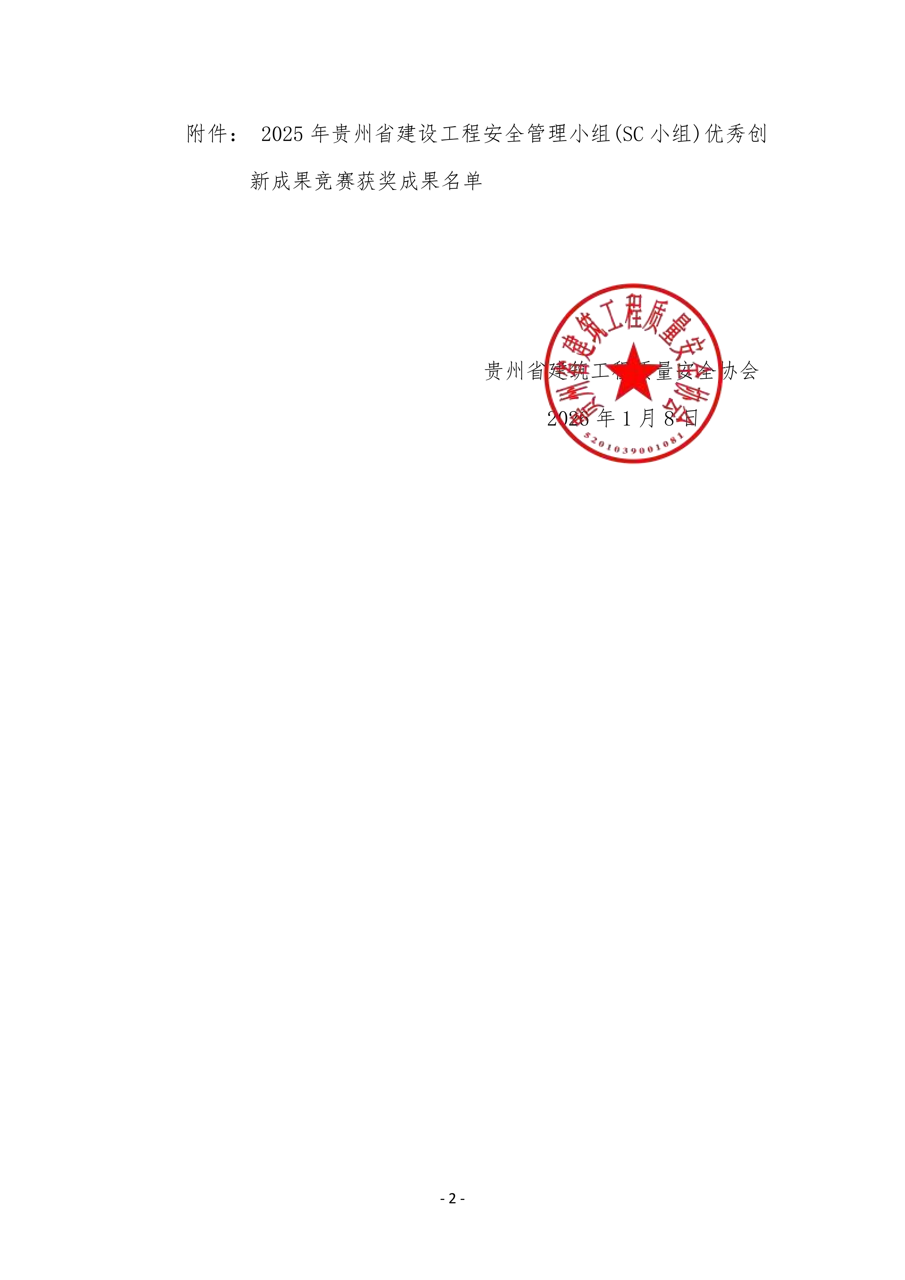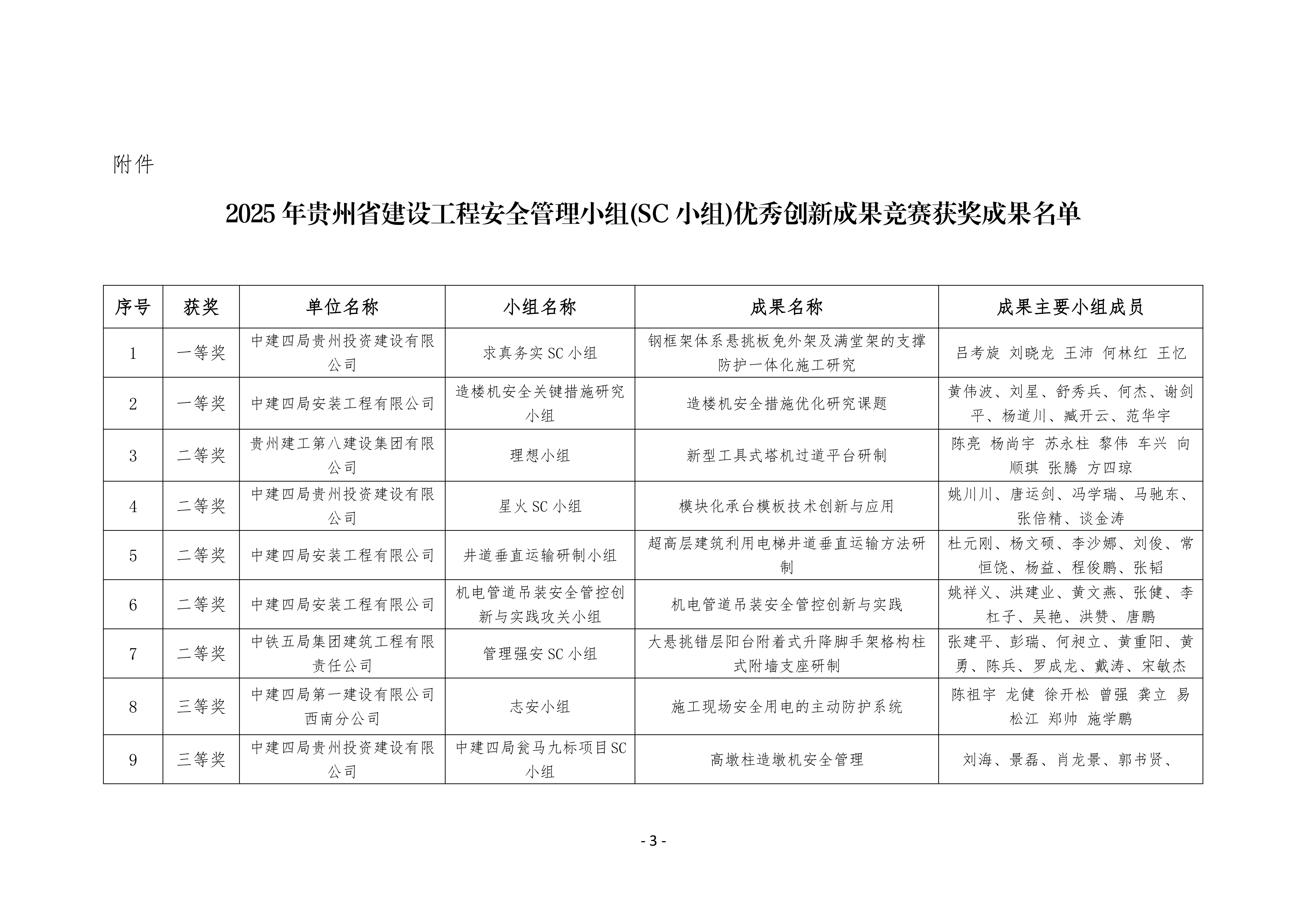 关于公布2025年贵州省建设工程安全管理小组(SC小组)优秀创新成果竞赛获奖成果名单的通知