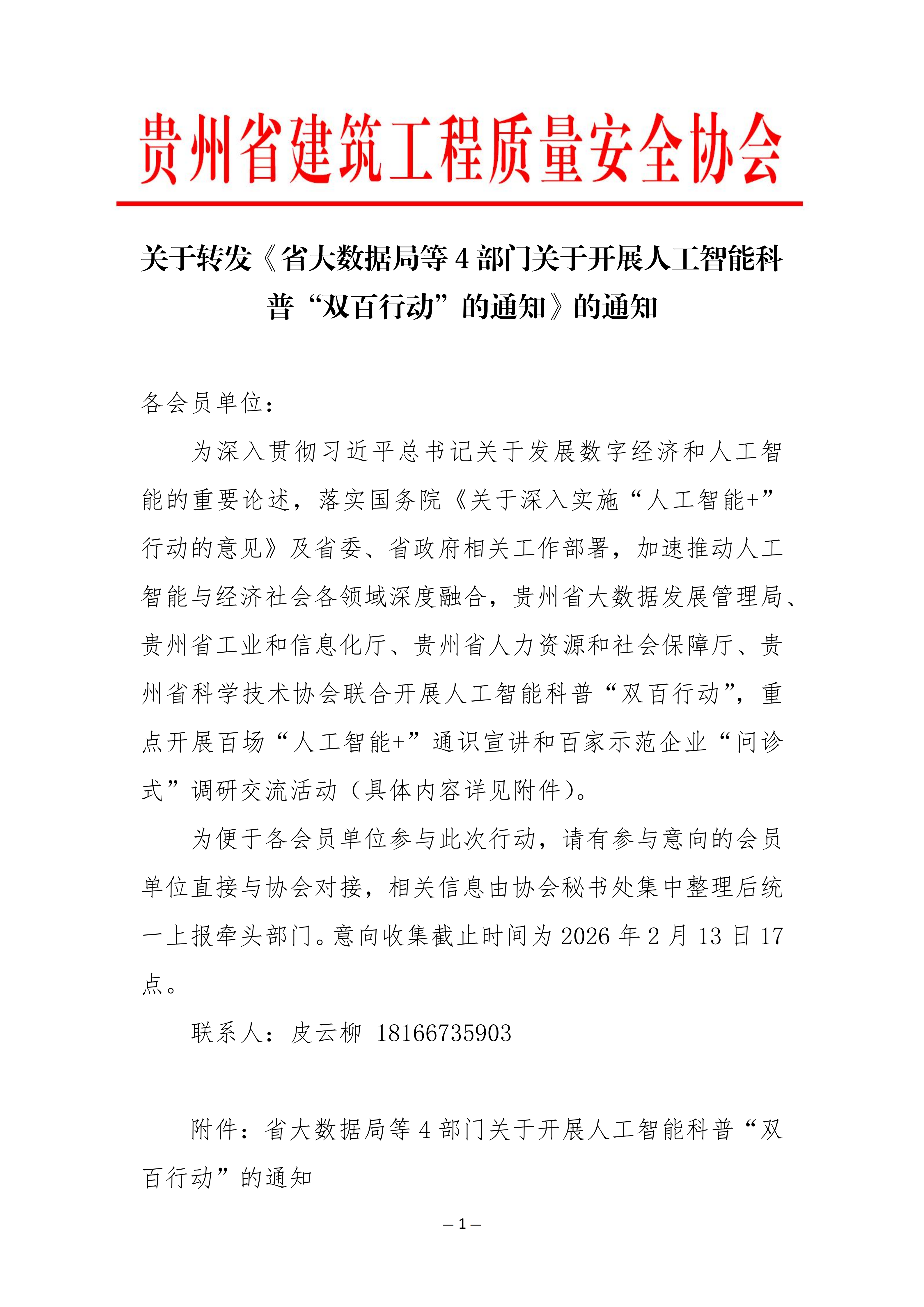 关于转发《省大数据局等4部门关于开展人工智能科普“双百行动”的通知》的通知