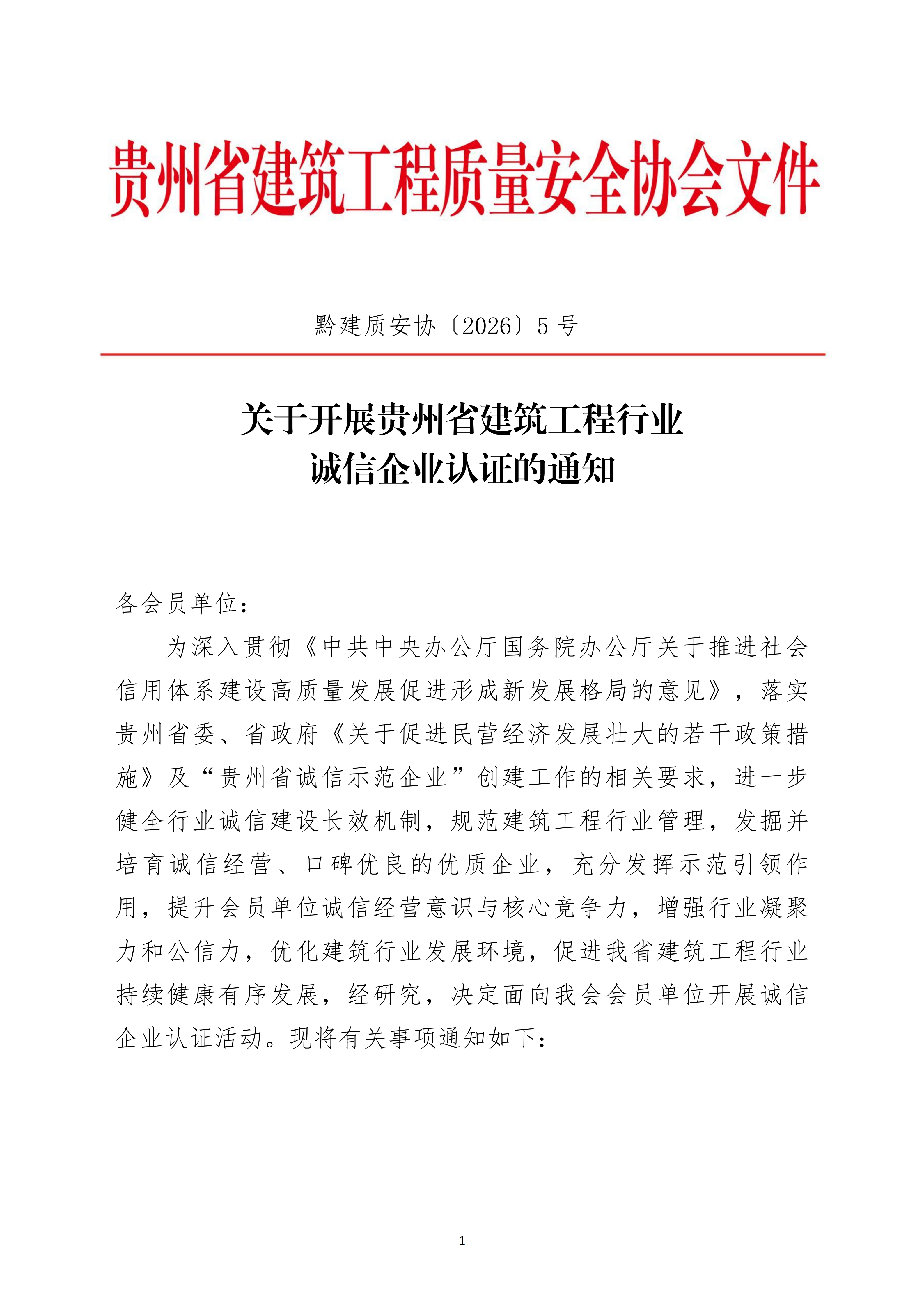 关于开展贵州省建筑工程行业诚信企业认证的通知