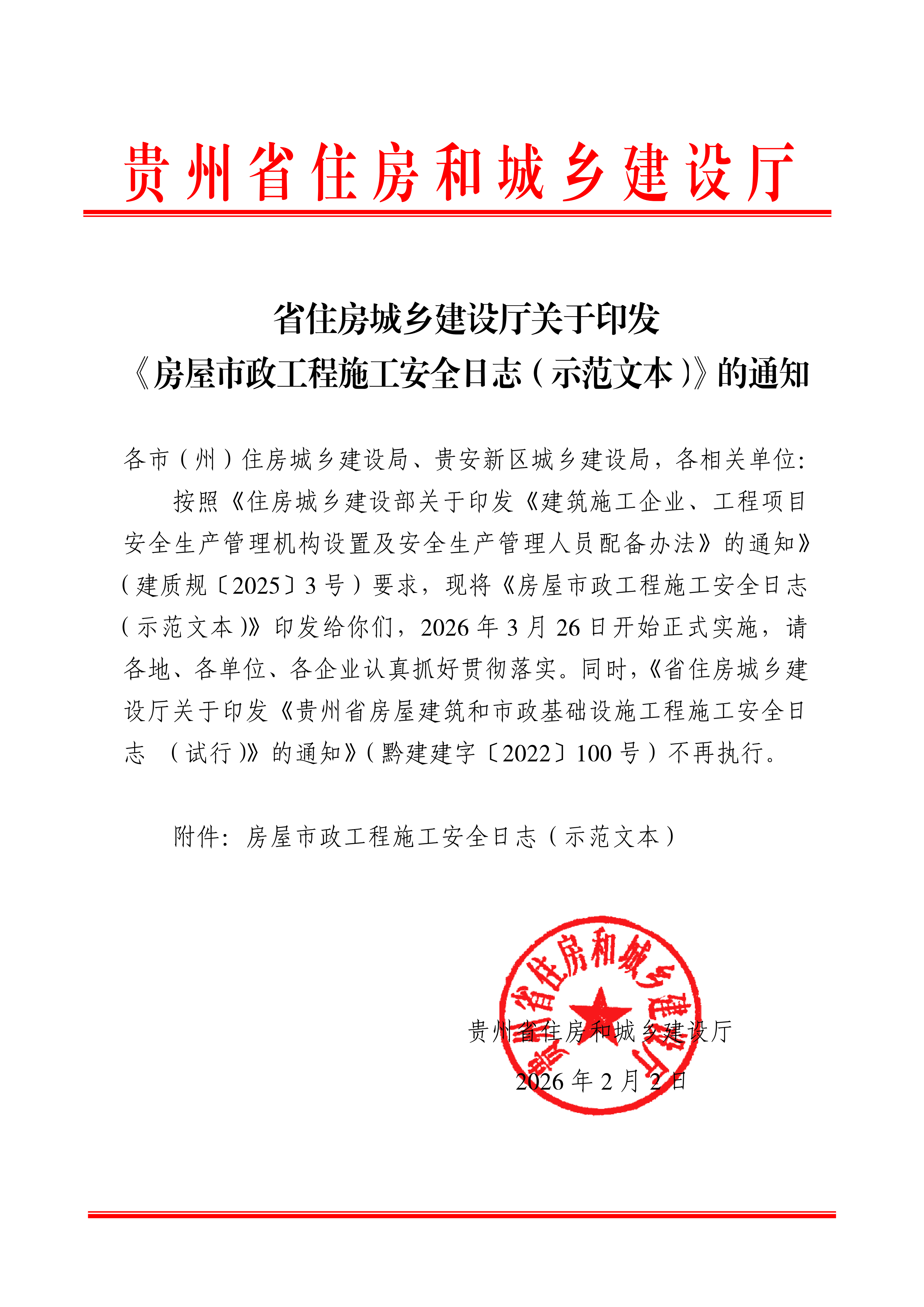省住房城乡建设厅关于印发《房屋市政工程施工安全日志(示范文本)》的通知
